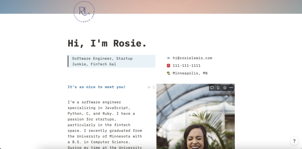Applying for jobs? Looking for a way to professionally market yourself online? Use this digital resume Notion template!