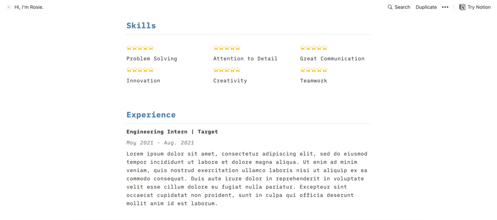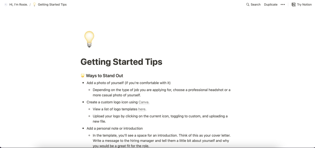 - Getting started guide with tips & tricks to make your Notion resume stand out