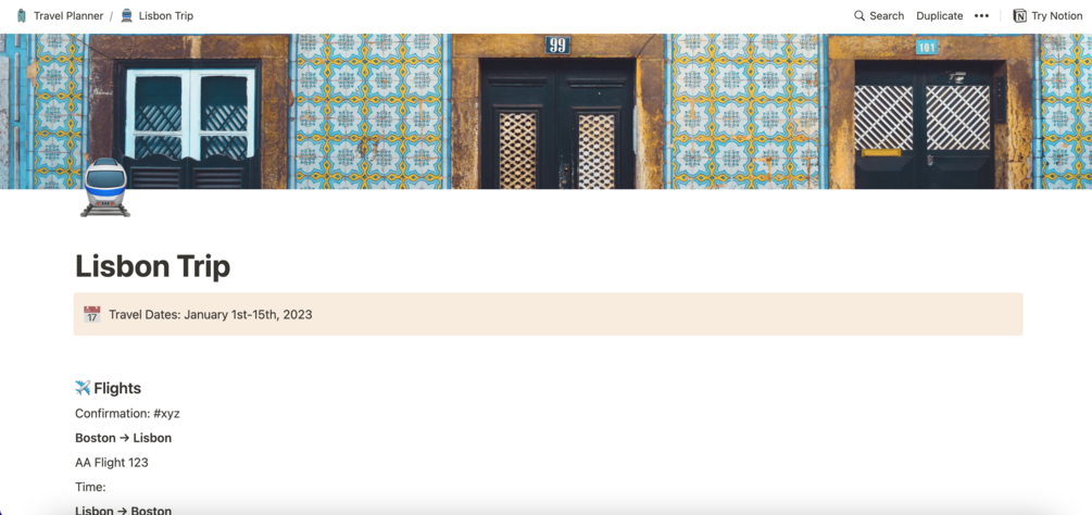 Plan out your trips, create your bucket list, document your travel, and more with this simple Notion page.